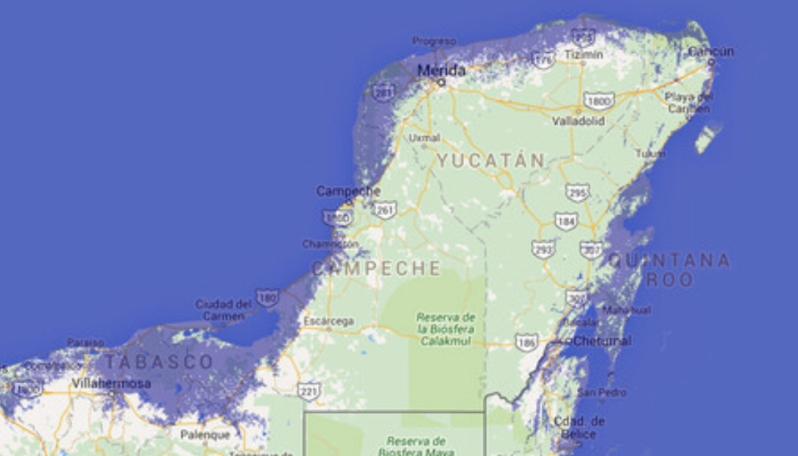 Yucatán, en México, con 9 metros más de agua marina. La costa ha sufrido importantes inundaciones, aunque a nivel continental la mayor parte de las poblaciones escapan al drama.